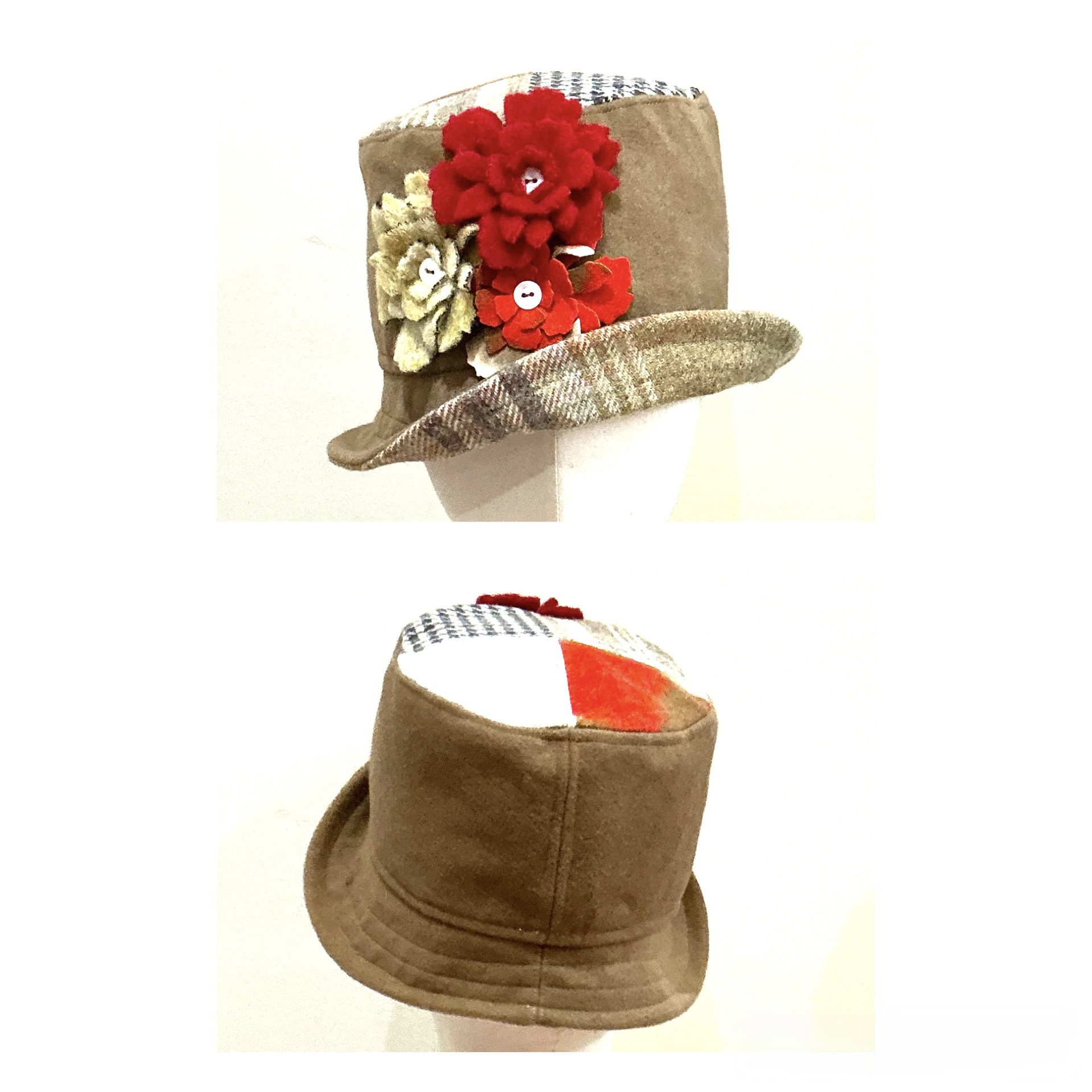 Ladies Winter hat .Wool Semi structured & fully lined. Brim can be worn up or down. Made to fit average head size 22.5 “