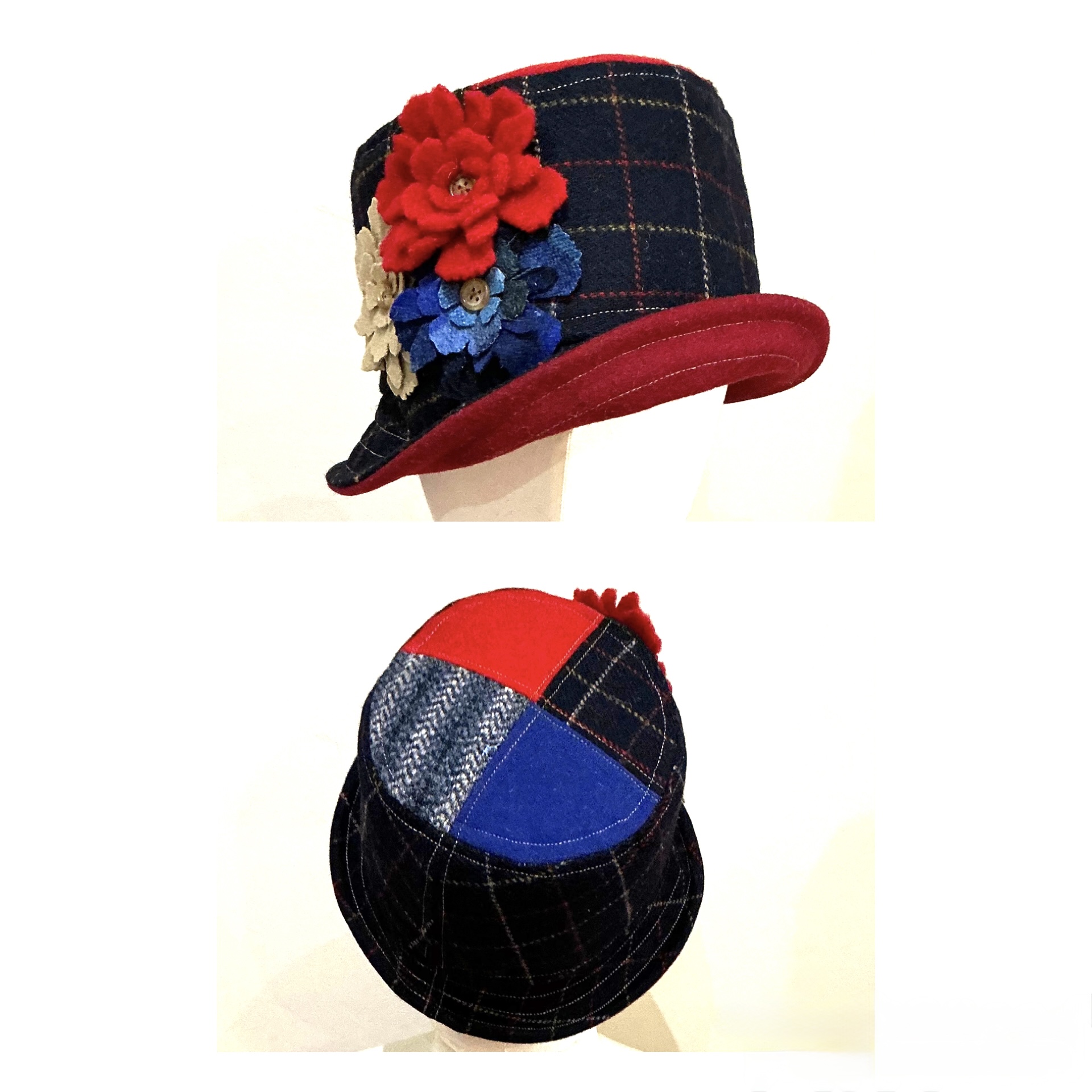 Ladies Winter hat .Wool Semi structured & fully lined. Brim can be worn up or down. Made to fit average head size 22.5 “